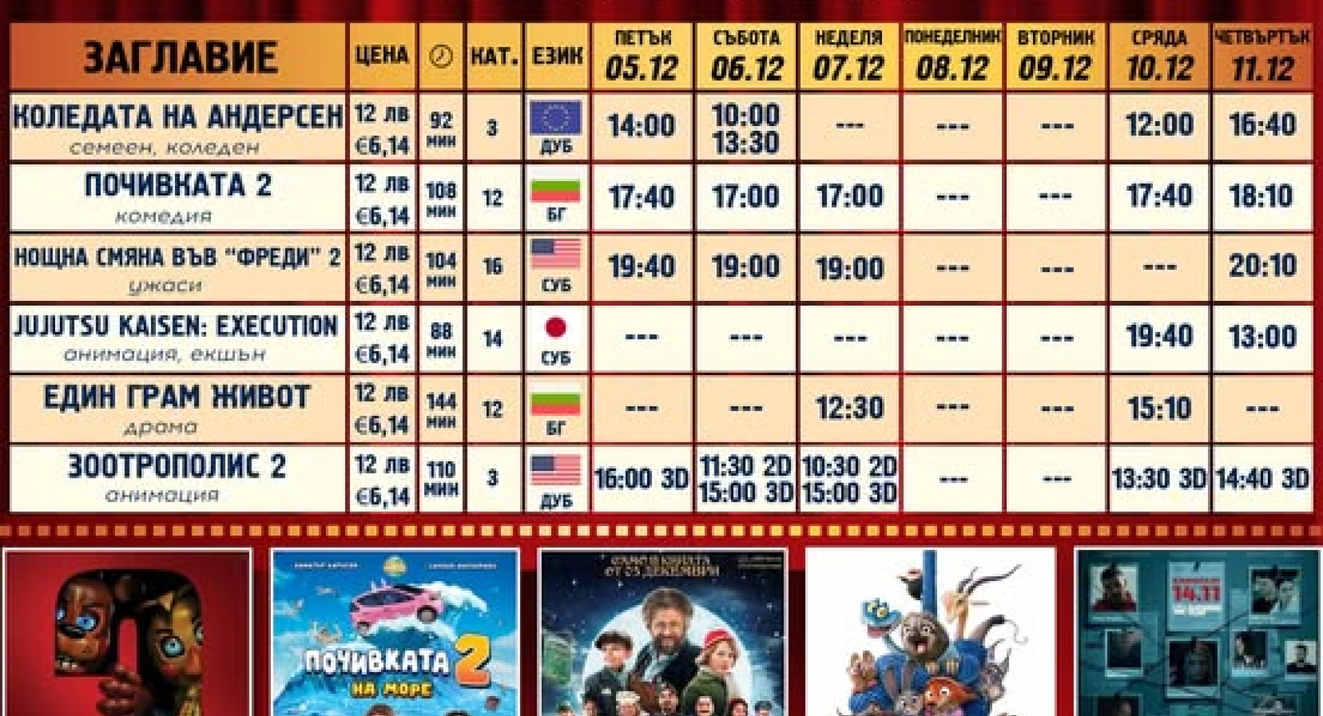 Коледният сезон започва с магическия филм "КОЛЕДАТА НА АНДЕРСЕН" от петък, 05.12! Забавление с бай Иван в "ПОЧИВКАТА 2" и "ЗООТРОПОЛИС 2" за всички деца!
