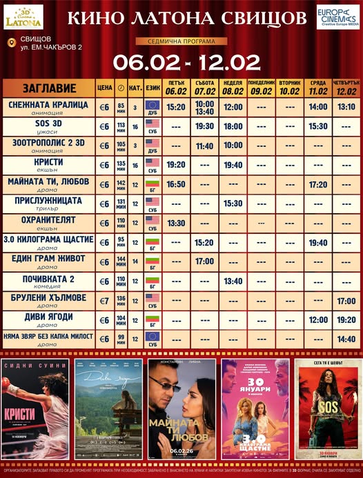 Новата програма на Latona Cinema/гр. Свищов от петък, 06.02!