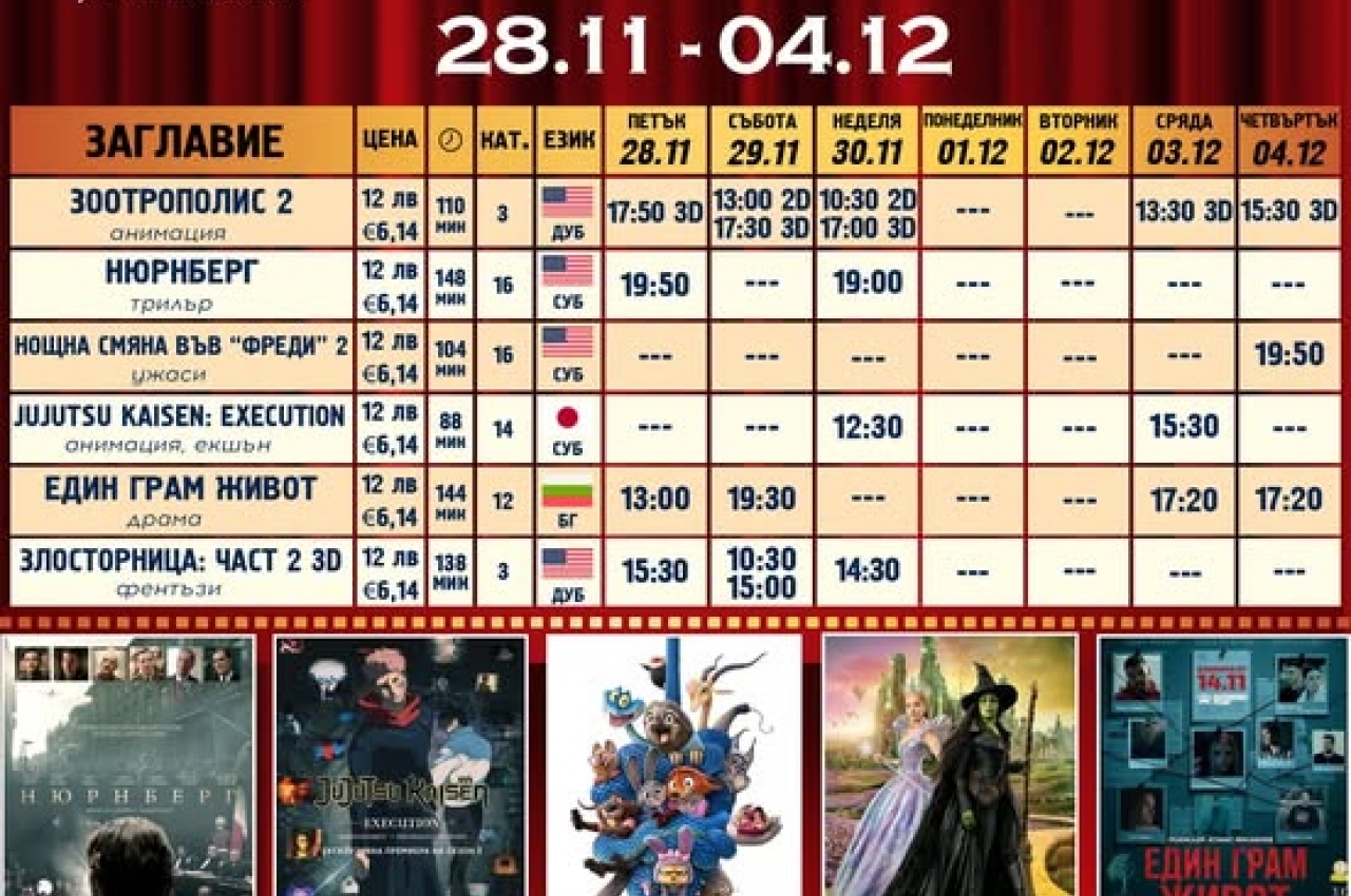 "ЗООТРОПОЛИС 2" е хитовата премиера в програмата от петък, 28.11! За любителите на страшните филми премиерно е "НОЩНА СМЯНА ВЪВ "ФРЕДИ" 2"!