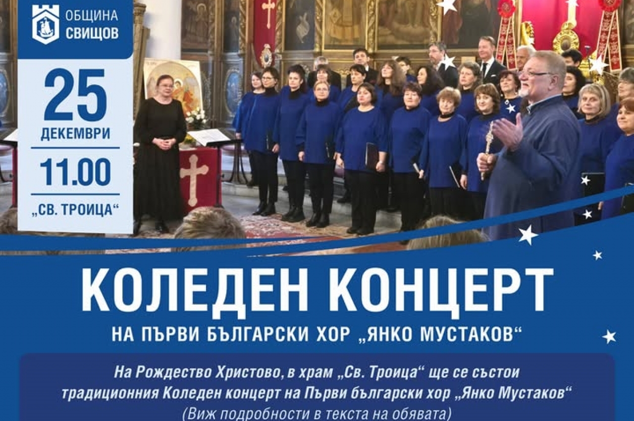 Заповядайте на Коледен концерт на Първи български хор "Янко Мустаков" на 25 декември 2025 година от 11:00 часа в Храм "Света Троица" в Свищов! Диригент Веселина Митева. Хормайстор…