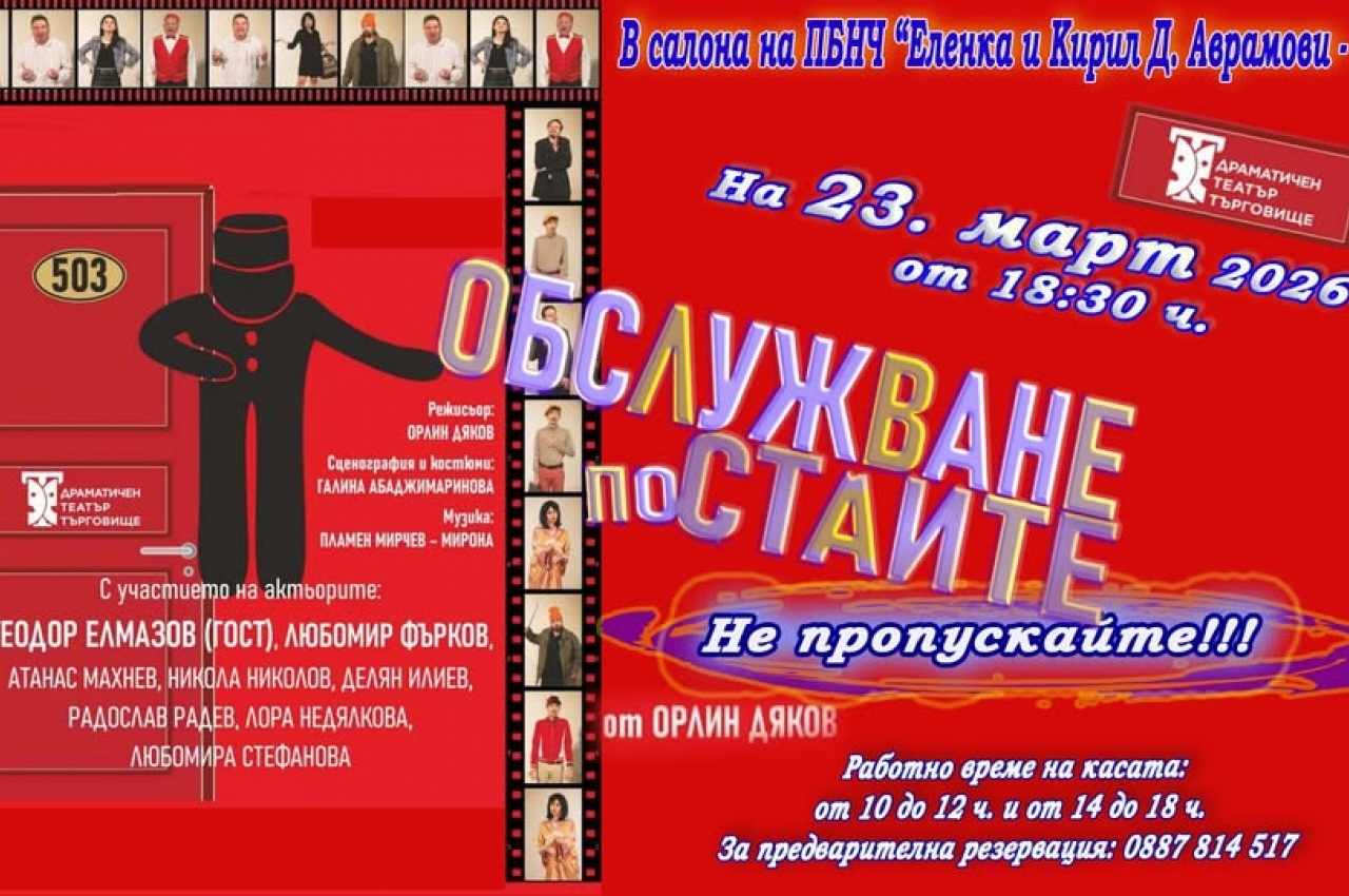 Заповядайте на театрална постановка на 17.02.26 г. в салона на ПБНЧ "Еленка и Кирил Д. Аврамови - 1856" от 18.30 ч. Билетите вече са в продажба на касата на читалището. Телефон…