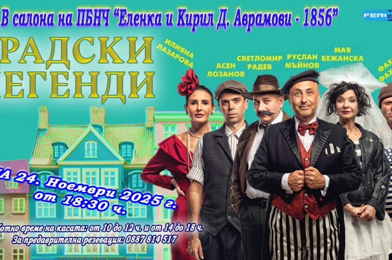 На 24.11. 2025 от 18,30 ч. заповядайте в салона на ПБНЧ "Е.иК.Д.Аврамови 1856 " на представлението "ГРАДСКИ ЛЕГЕНДИ". Билети на касата на читалището.