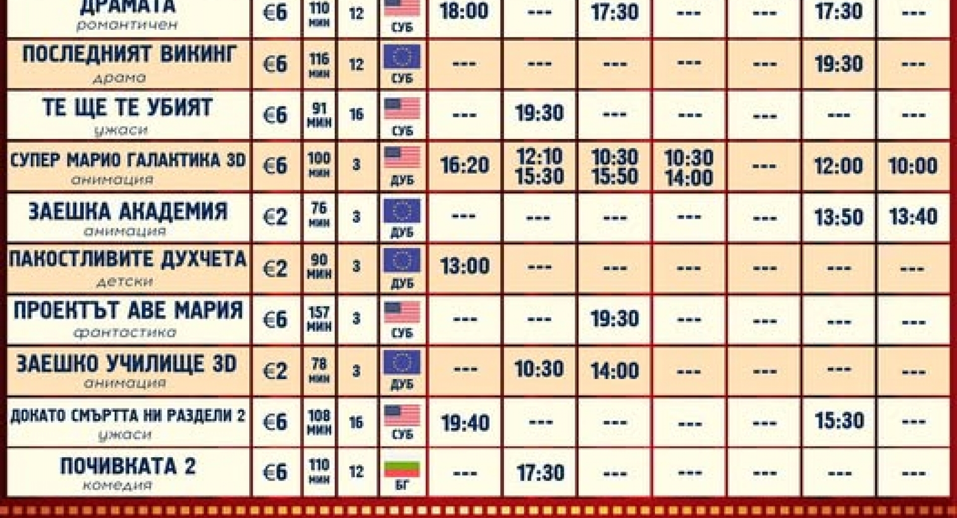 Кино Латона – Свищов ви кани на нова кино седмица, изпълнена с още повече емоции и страхотни заглавия! 03.04 – 09.04 гр. Свищов, ул. „Ем. Чакъров“ 2 Очакват ви разнообразни…