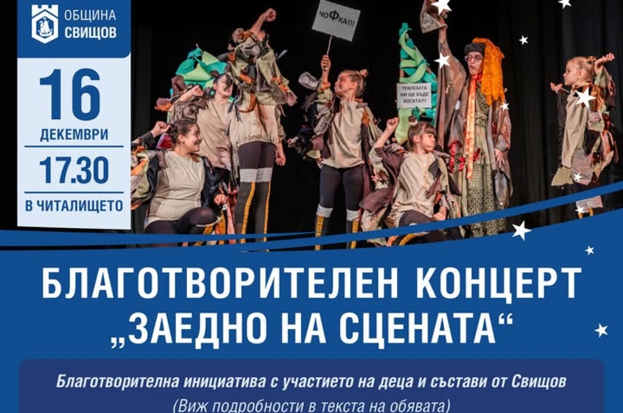 Утре, 16 декември от 17.30 часа, в салона на Свищовското читалище ще се състои благотворителен концерт под надслов „Заедно на сцената“. Концертът се организира от Община…